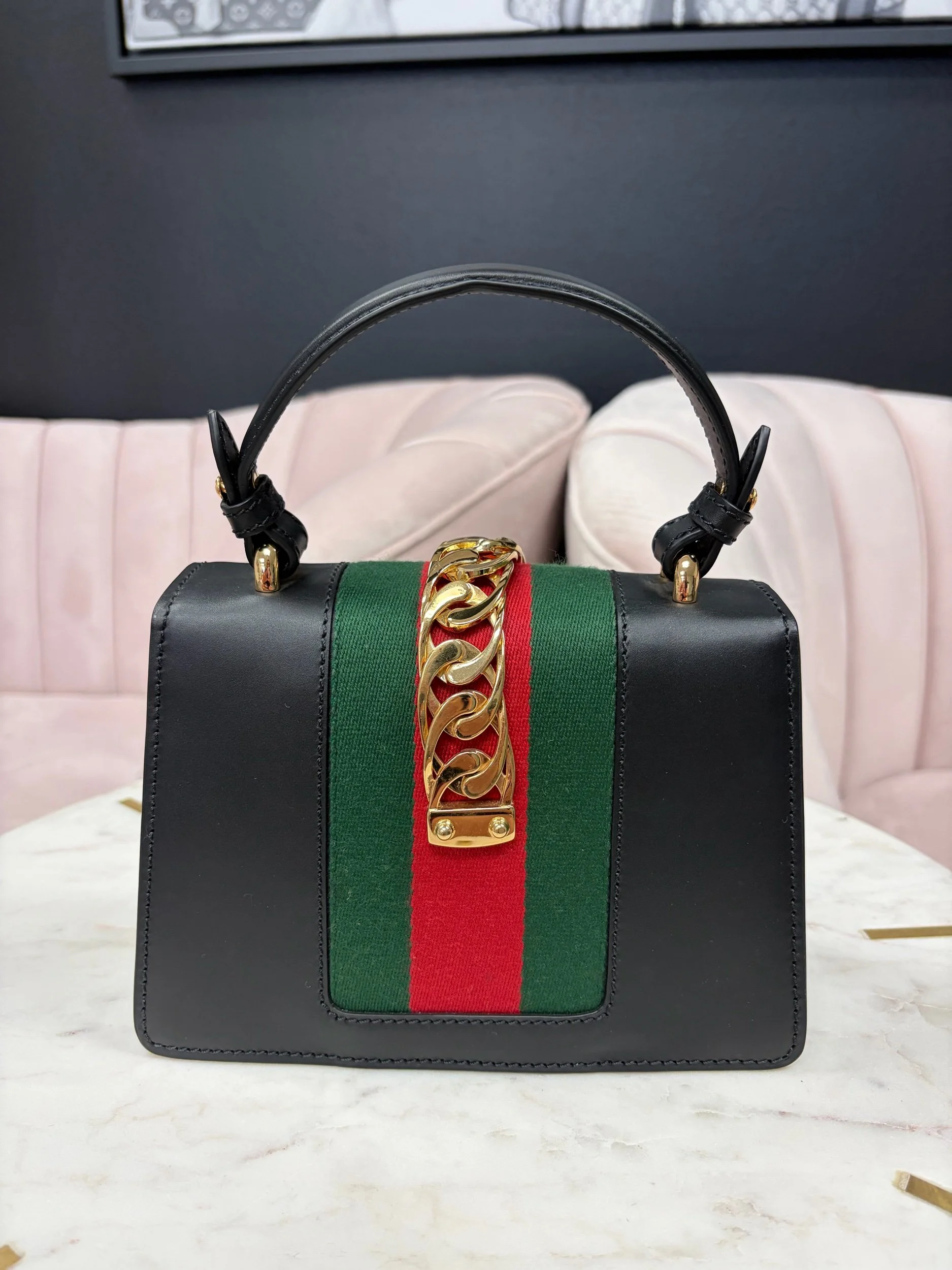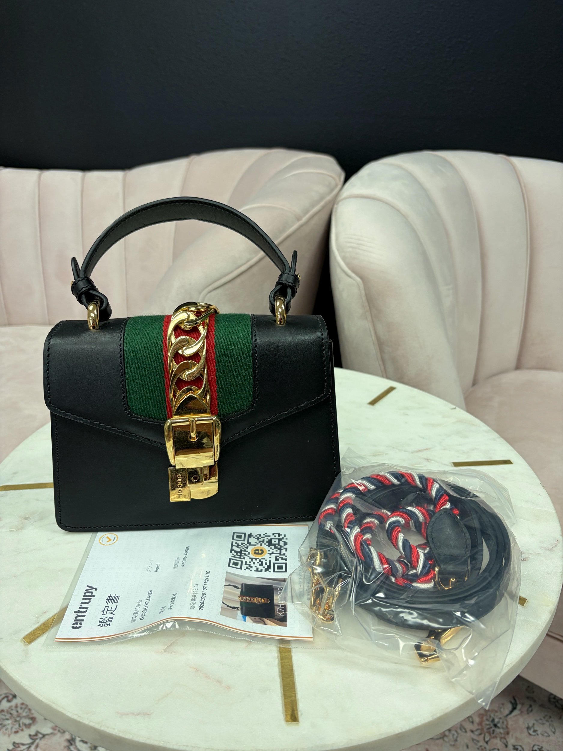Image 1 of 5 Image 2 of 5 Image 3 of 5 Image 4 of 5 Image 5 of 5 Gucci Sylvie Leather Mini Bag $900.00 Gucci Sylvie Leather Mini Bag Comes with removable strap. Purchase Added! Gucci Sylvie Leather Mini Bag Comes with removable strap.