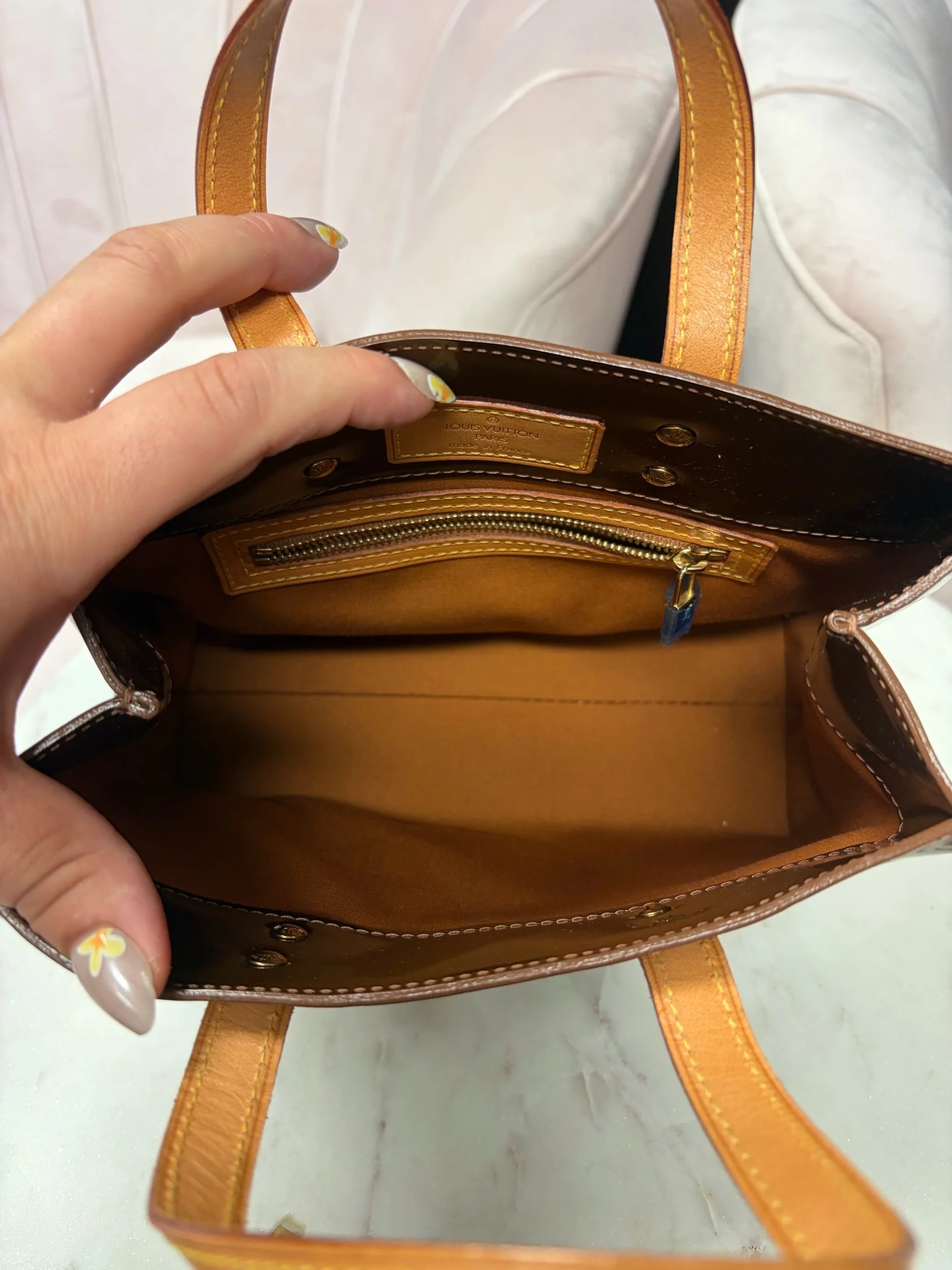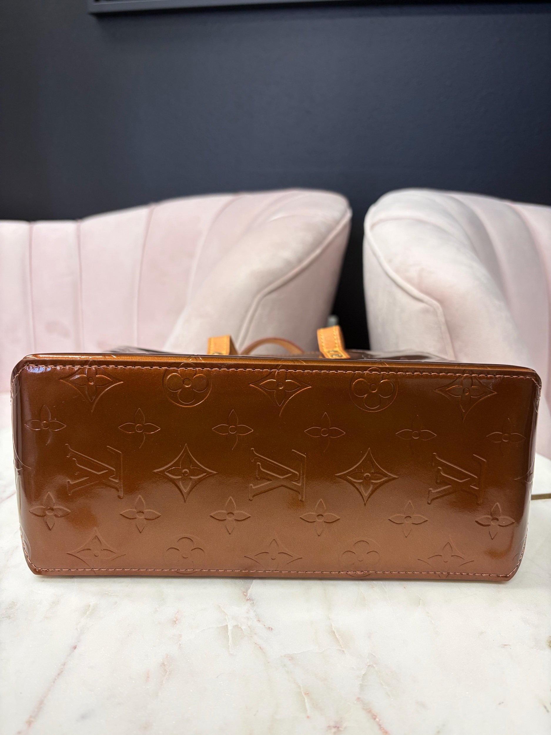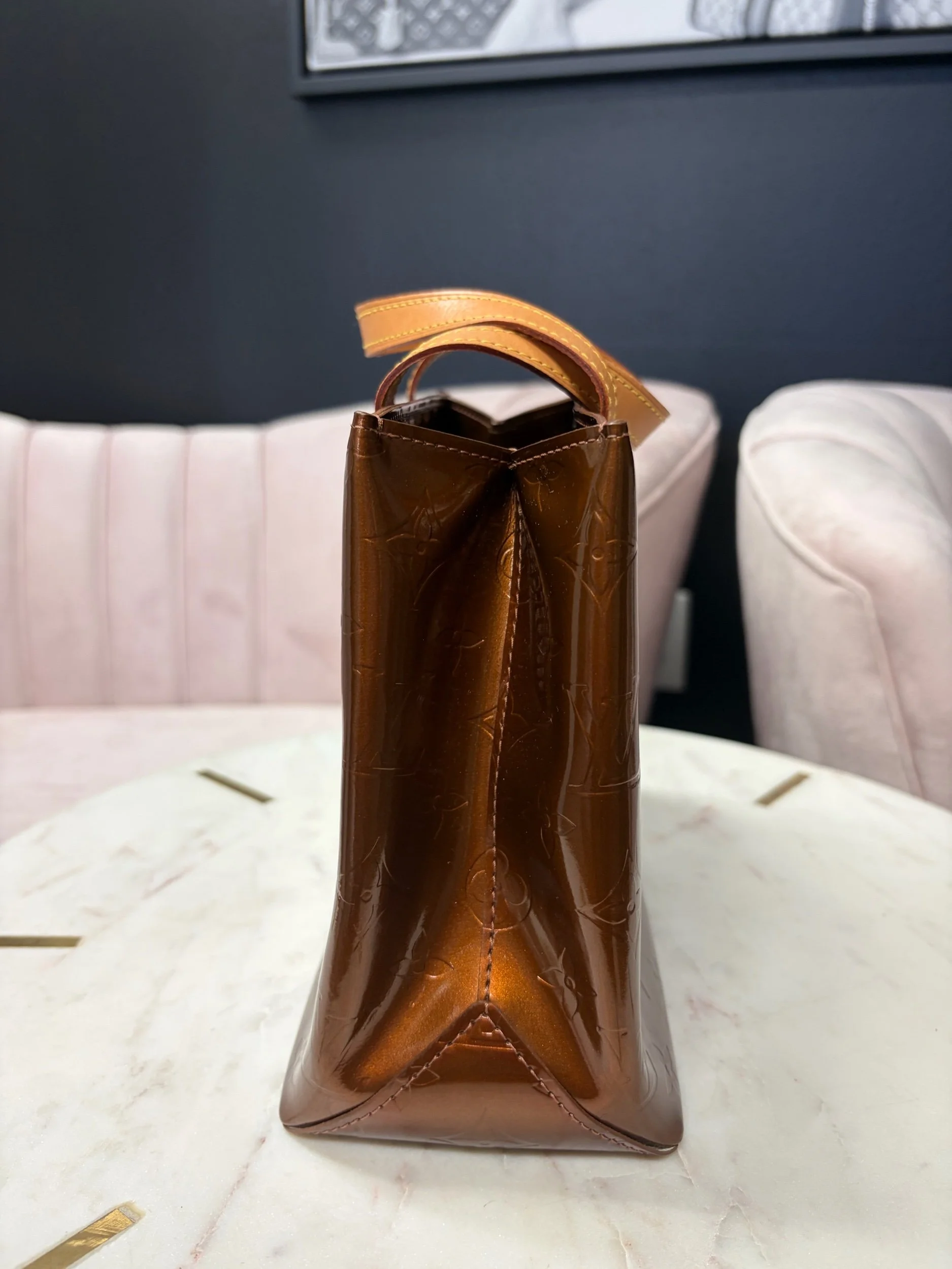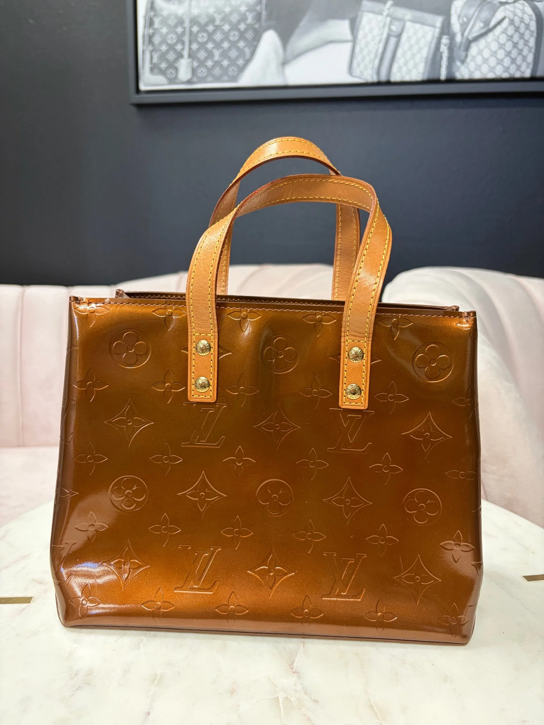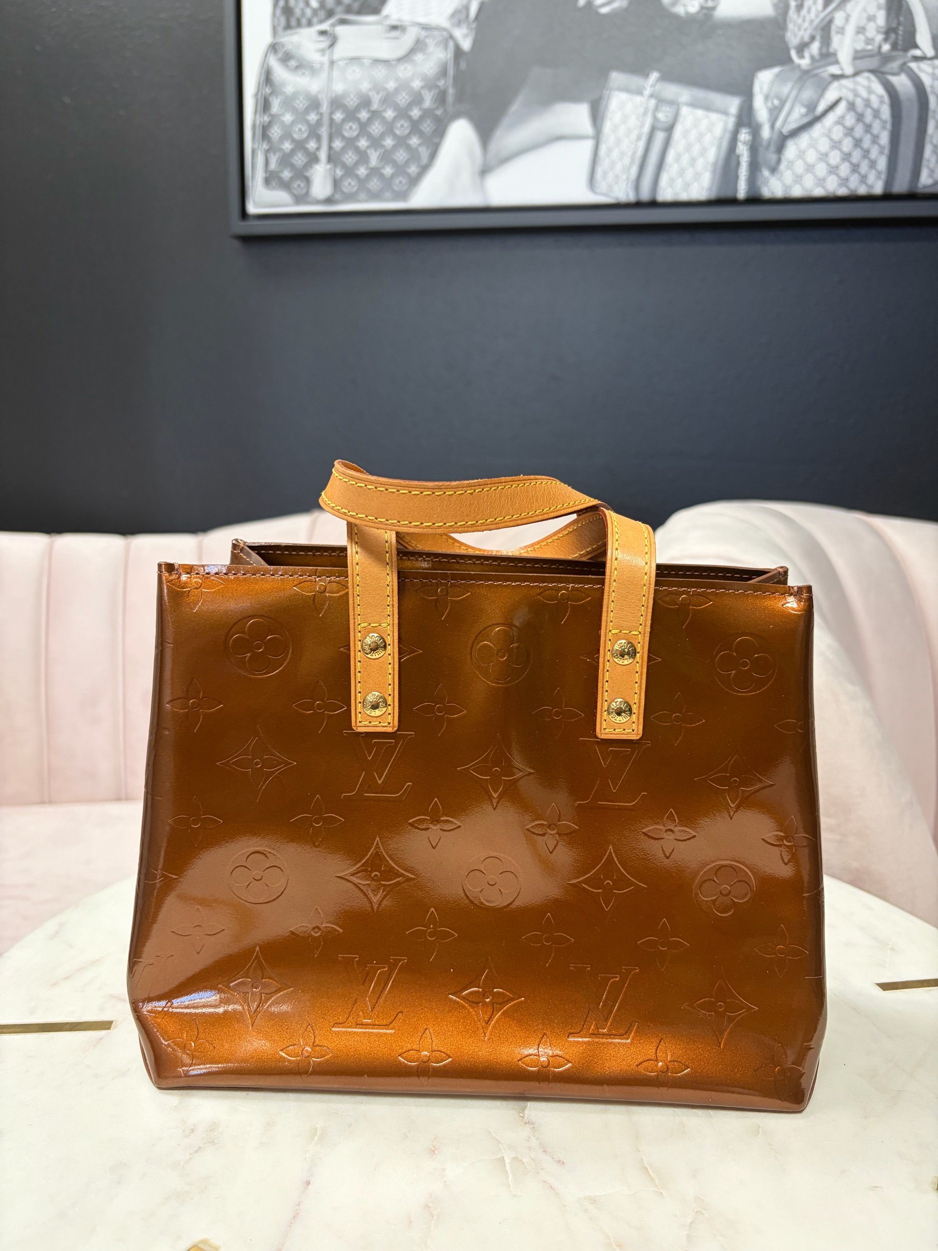 Image 1 of 5 Image 2 of 5 Image 3 of 5 Image 4 of 5 Image 5 of 5 Louis Vuitton Monogram Vernis $580.00 Louis Vuitton Monogram Vernis Reade PM bag in the bronze color, good condition. Purchase Added! Louis Vuitton Monogram Vernis Reade PM bag in the bronze color, good condition.