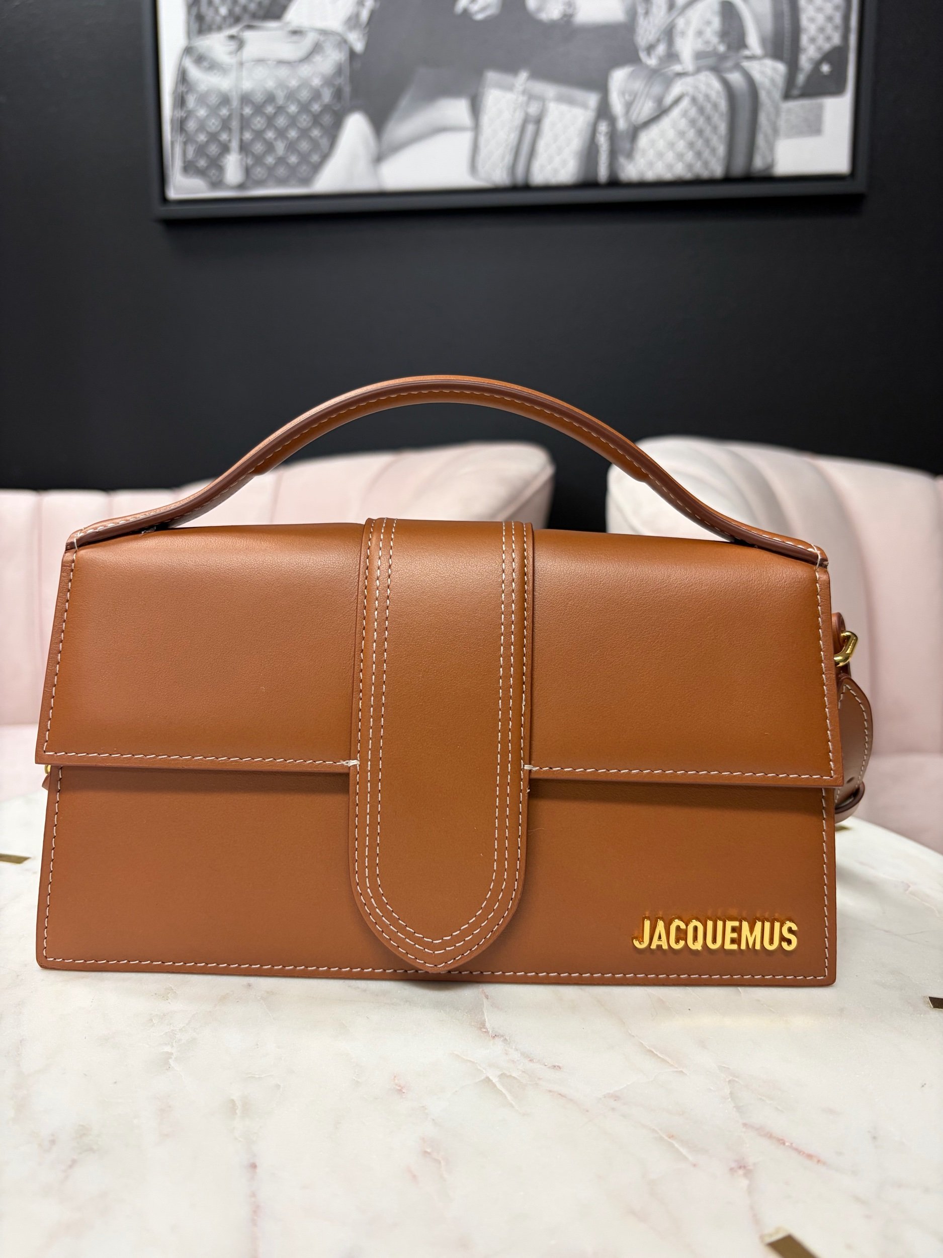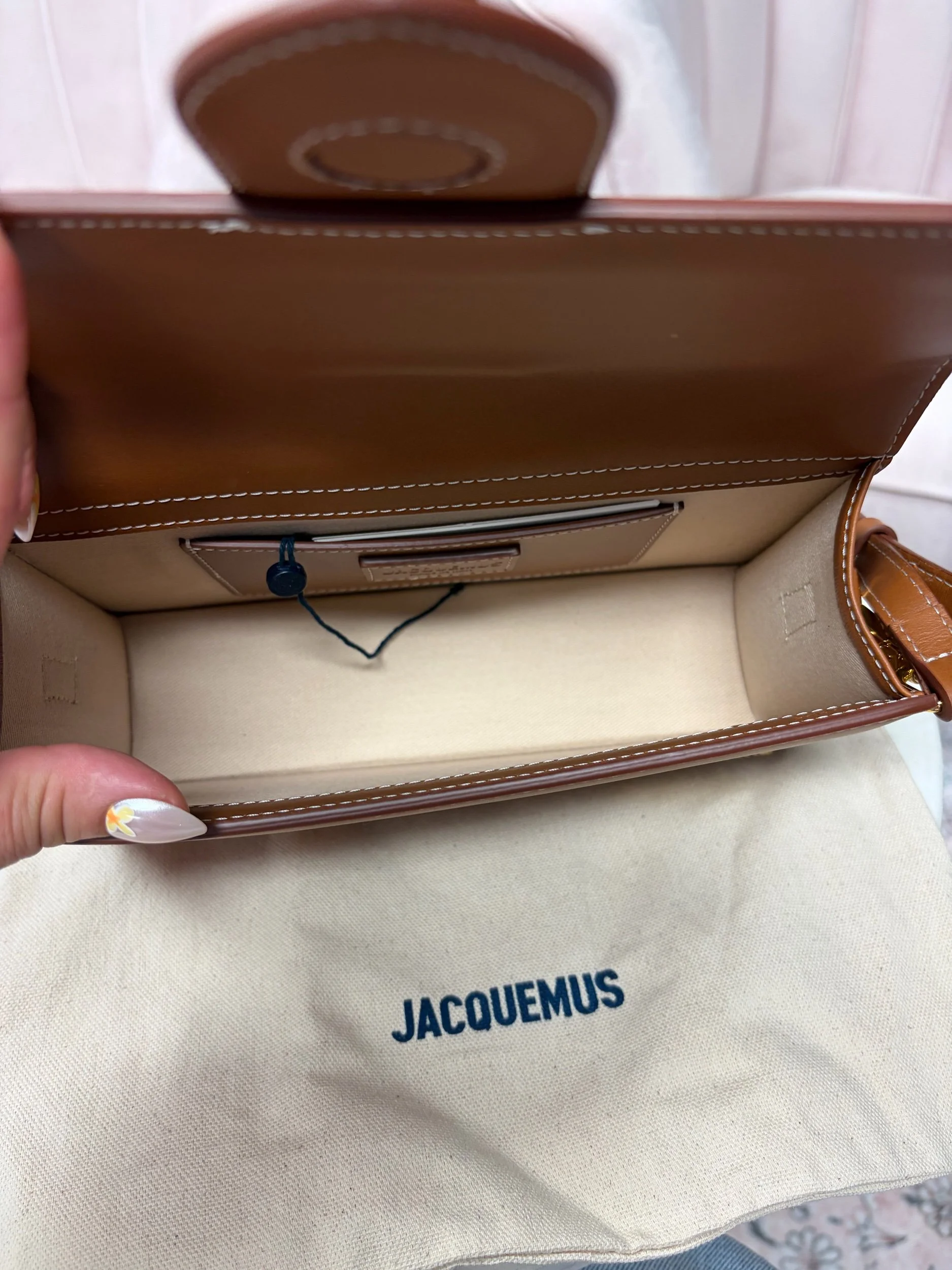 Image 1 of 5 Image 2 of 5 Image 3 of 5 Image 4 of 5 Image 5 of 5 Jacquemus Light Brown $780.00 Jacquemus Le Grand Bambino leather shoulder bag in light brown brand new. Purchase Added! Jacquemus Le Grand Bambino leather shoulder bag in light brown brand new.