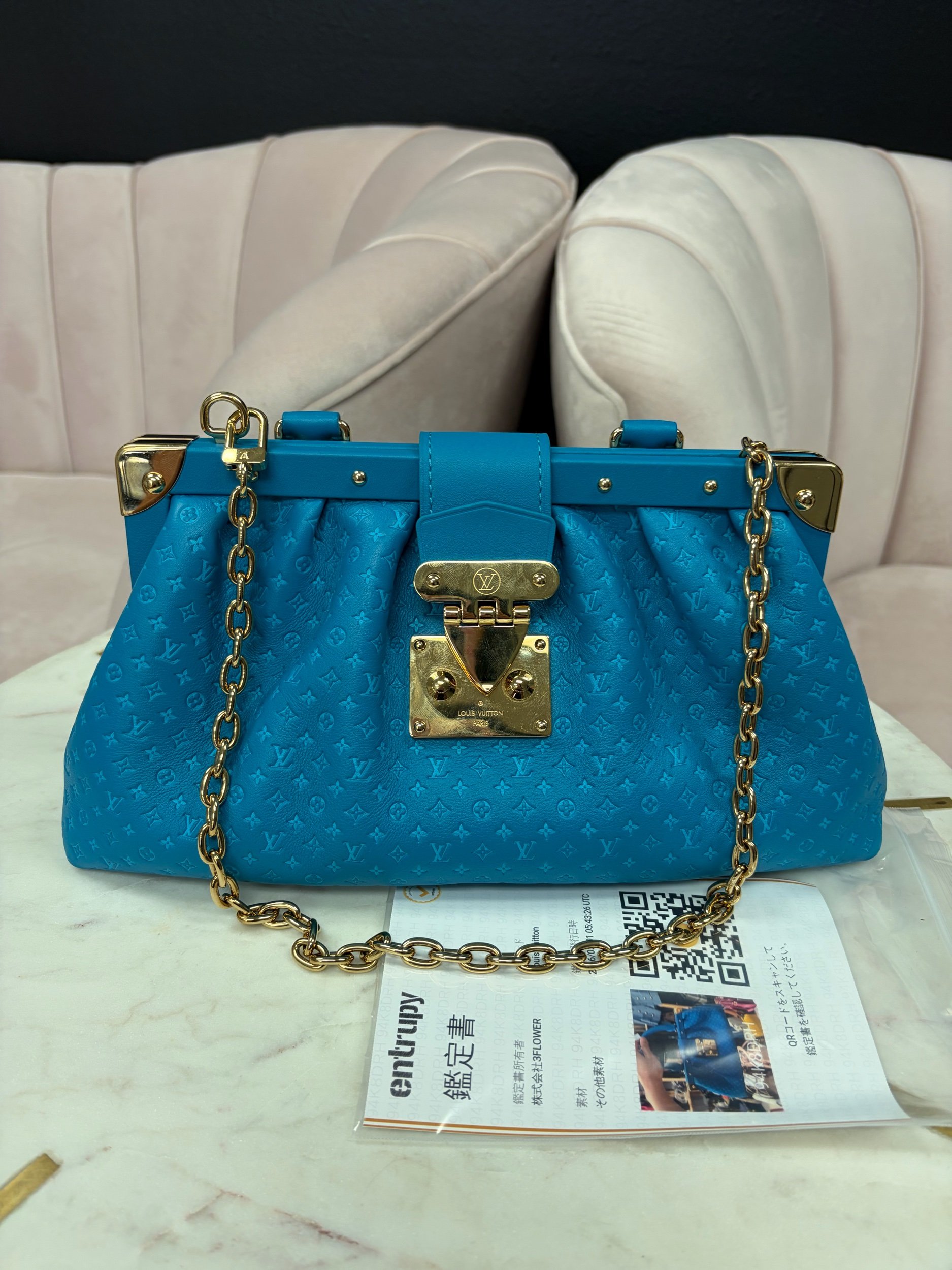 Image 1 of 5 Image 2 of 5 Image 3 of 5 Image 4 of 5 Image 5 of 5 Louis Vuitton Calfskin Nanogram Embossed Clutch in Bleu $2,650.00 Limited edition Louis Vuitton Calfskin Nanogram Embossed Clutch in Bleu Purchase Added! Limited edition Louis Vuitton Calfskin Nanogram Embossed Clutch in Bleu