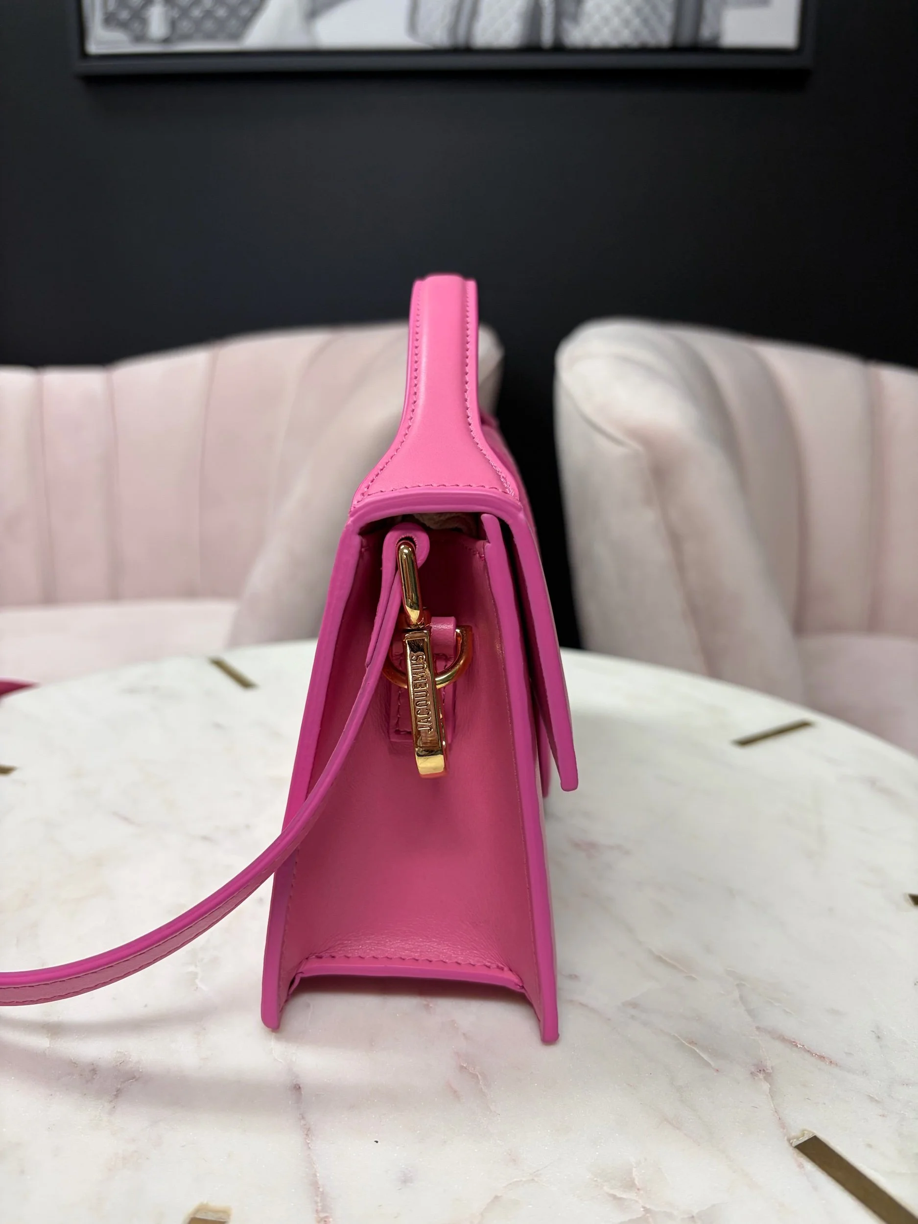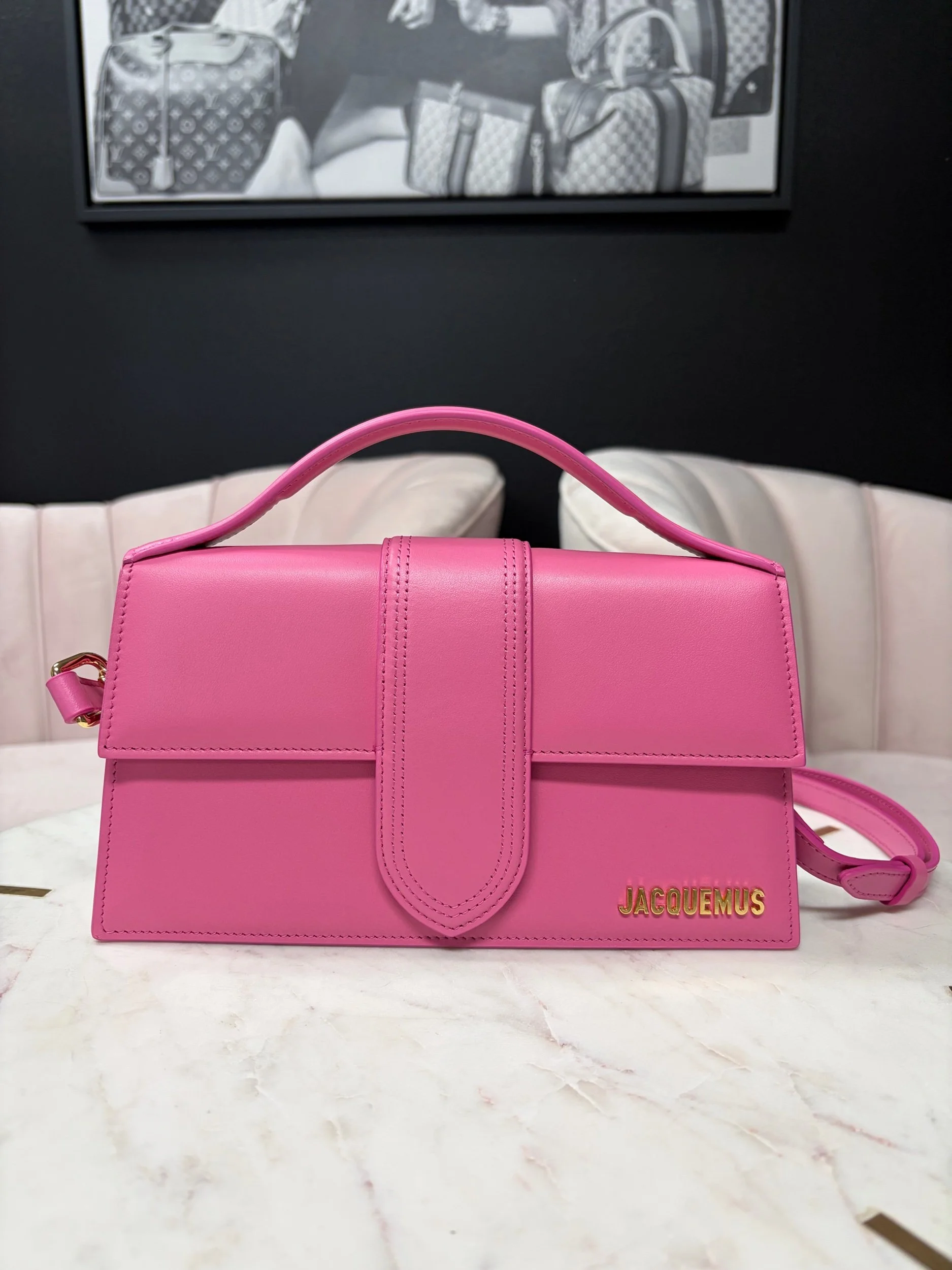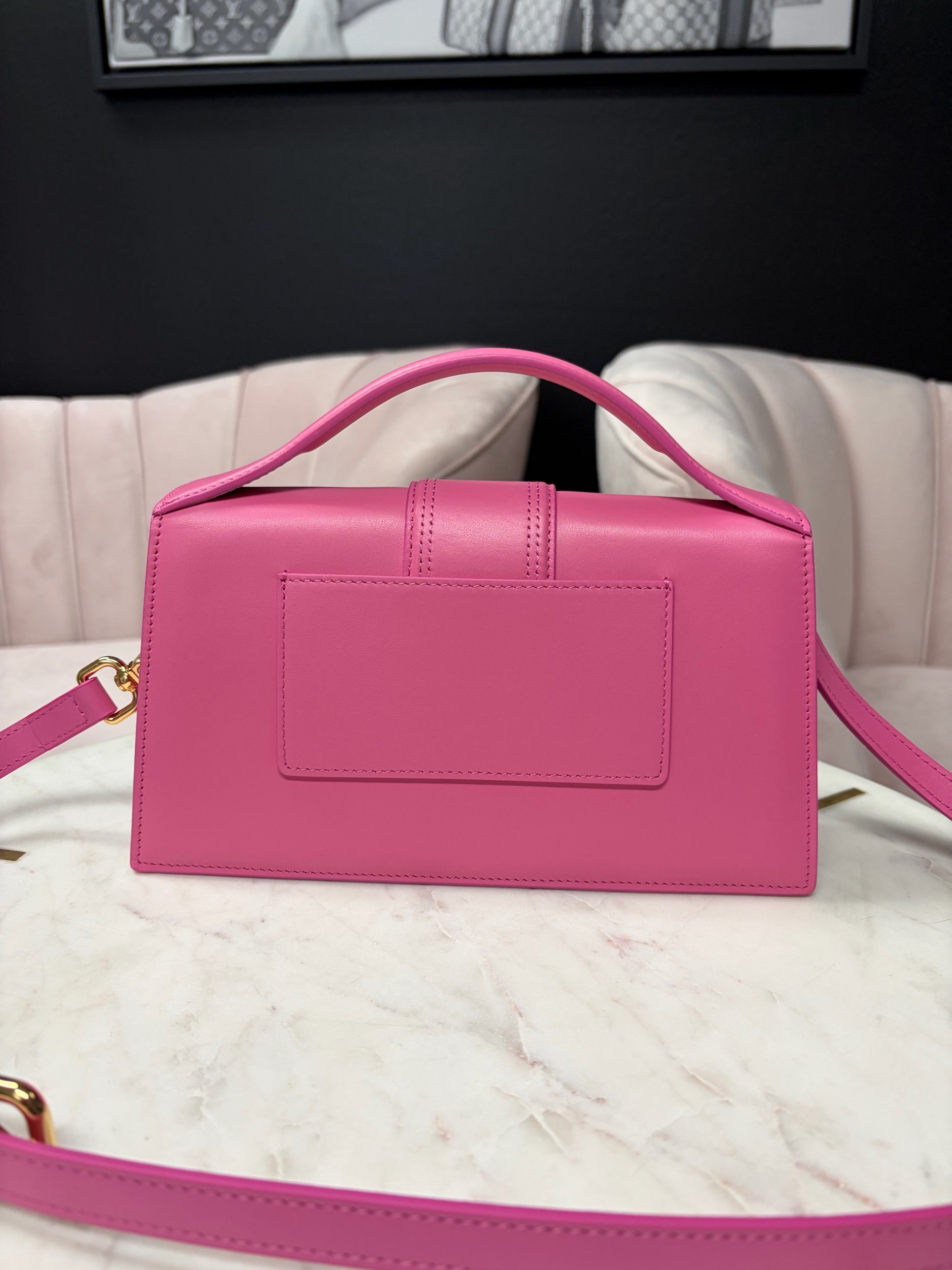 Image 1 of 5 Image 2 of 5 Image 3 of 5 Image 4 of 5 Image 5 of 5 Jacquemus pink $780.00 Jacquemus Le Grand Bambino leather shoulder bag in pink Brand new. Purchase Added! Jacquemus Le Grand Bambino leather shoulder bag in pink Brand new.