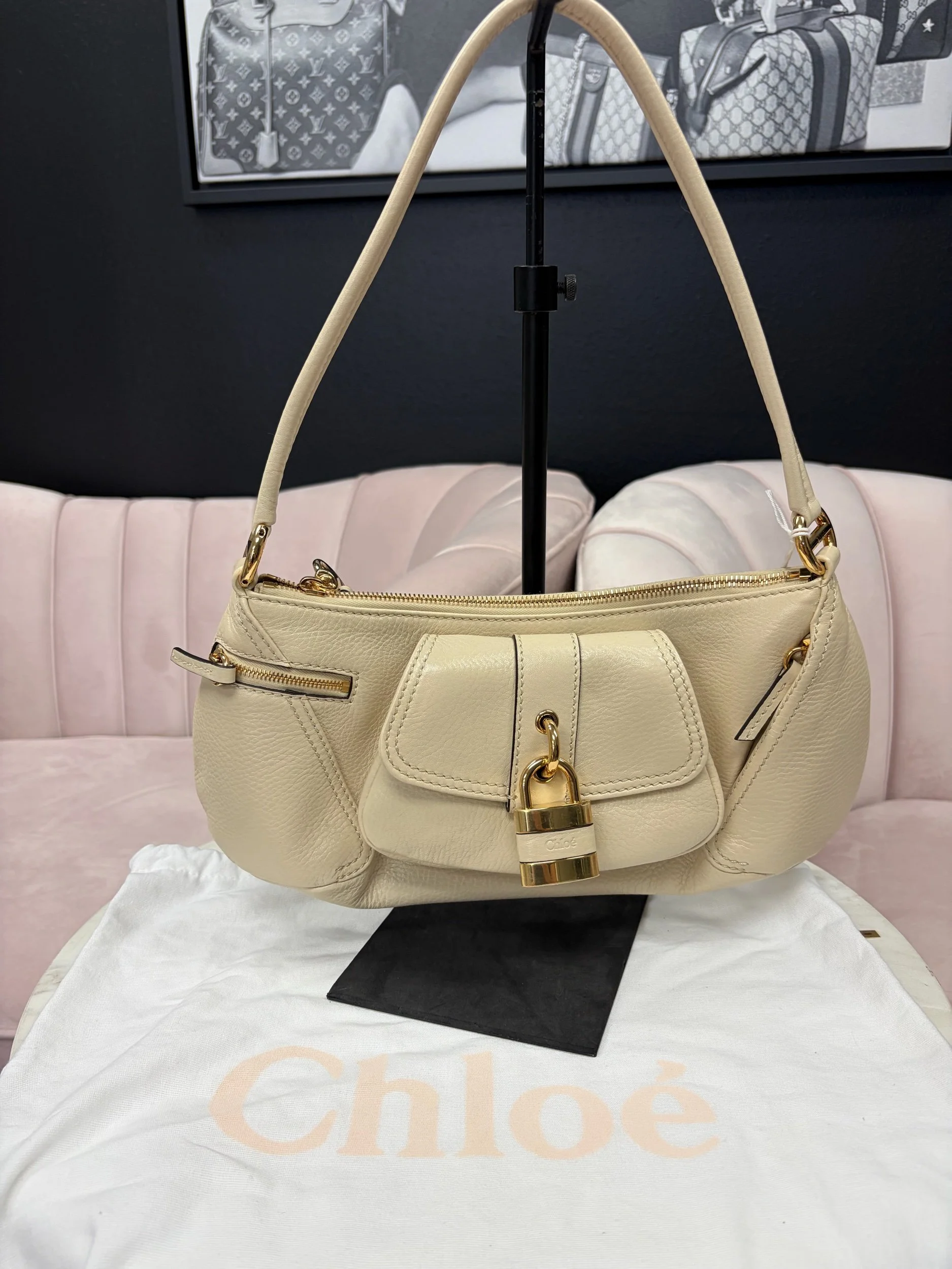 Image 1 of 7 Image 2 of 7 Image 3 of 7 Image 4 of 7 Image 5 of 7 Image 6 of 7 Image 7 of 7 Chloé The 99 shoulder bag $1,400.00 Chloé The 99 shoulder bag crafted from leather, featuring a distinctive padlock charm on the front flap pocket Brand New!!! Purchase Added! Chloé The 99 shoulder bag crafted from leather, featuring a distinctive padlock charm on the front flap pocket Brand New!!!