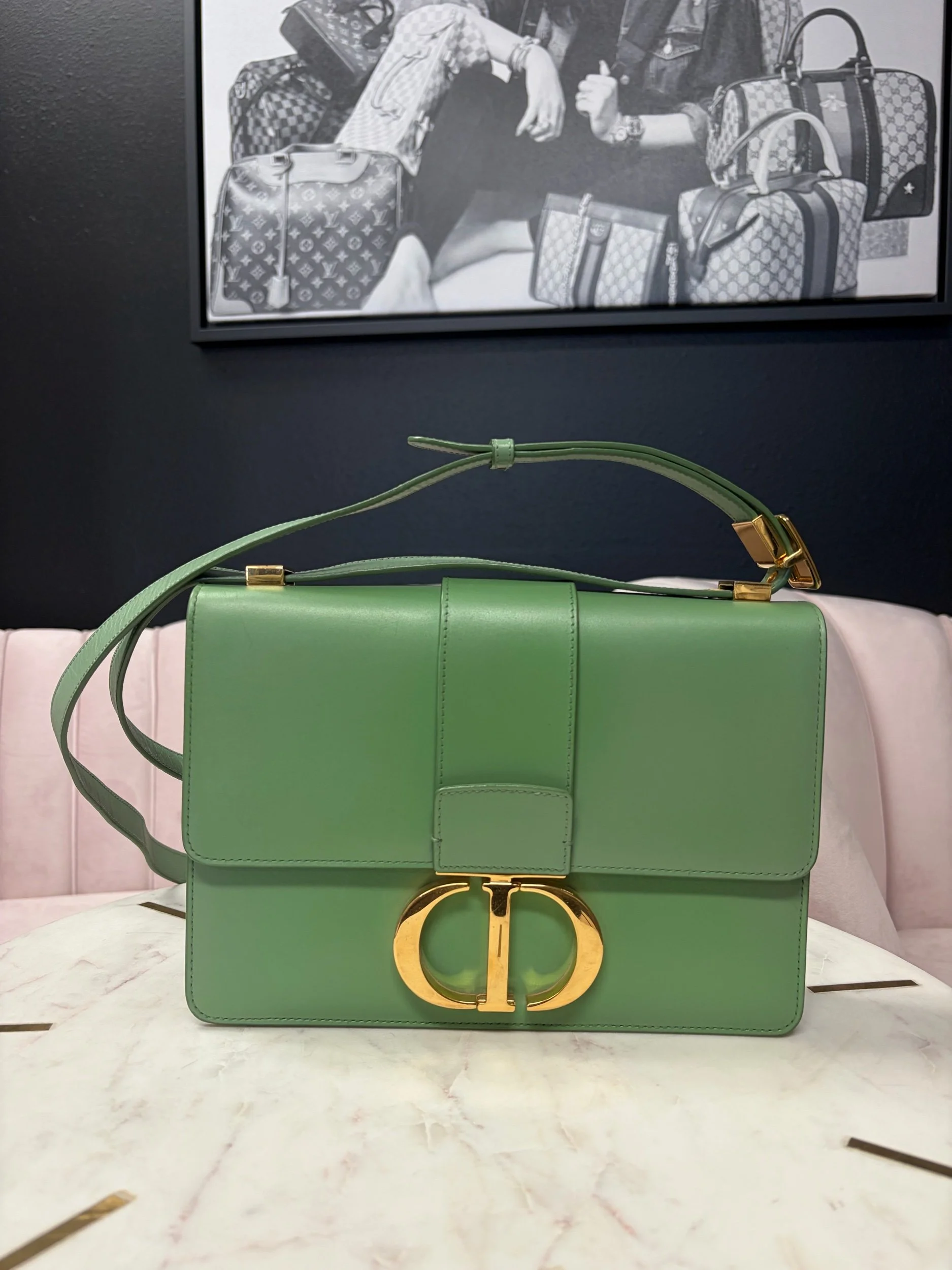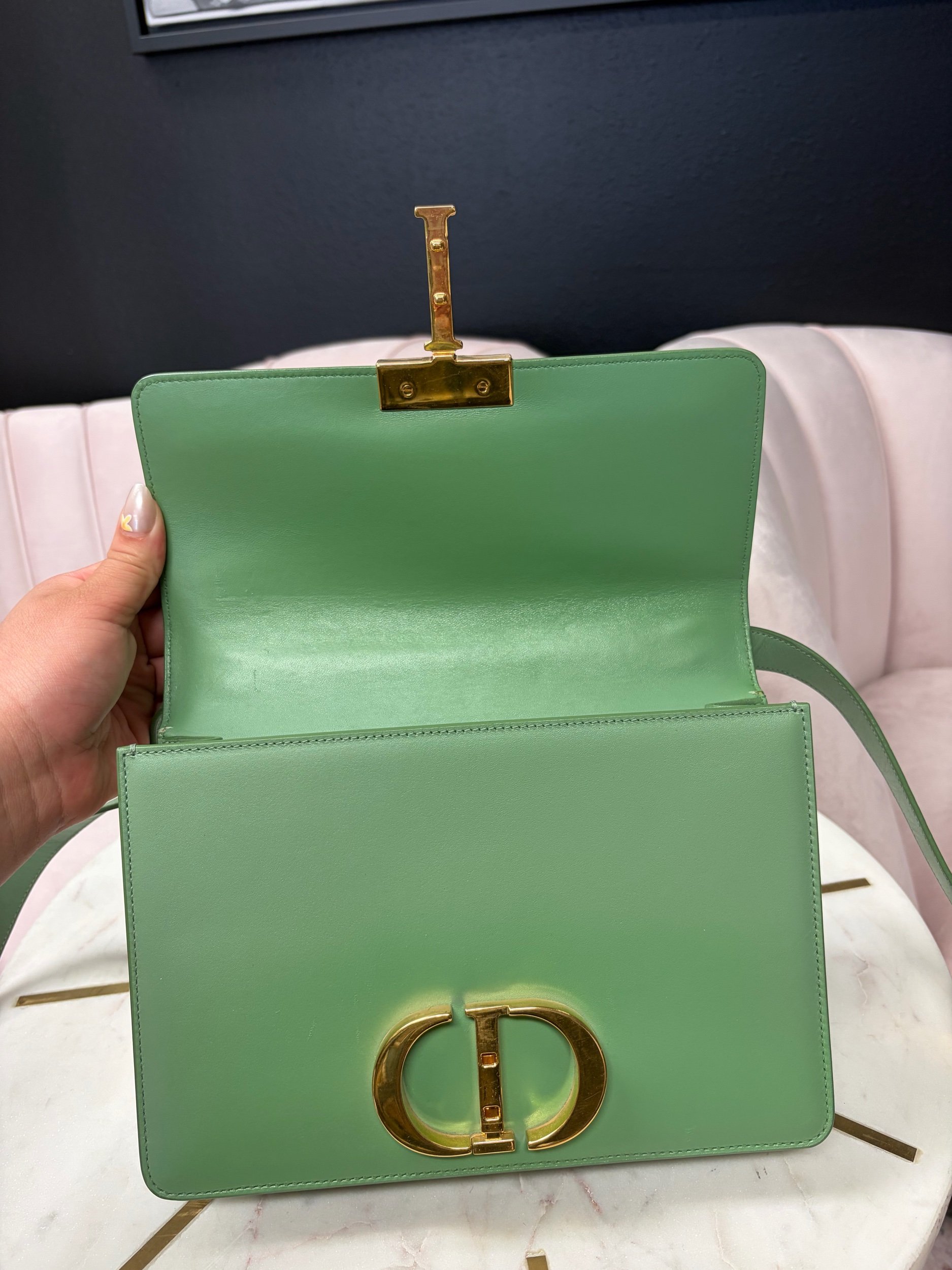 Image 1 of 7 Image 2 of 7 Image 3 of 7 Image 4 of 7 Image 5 of 7 Image 6 of 7 Image 7 of 7 Dior Montaigne mint green $1,450.00 Christian Dior 30 Montaigne Flap Bag, specifically featured in smooth mint green calfskin with gold-tone hardware Purchase Added! Christian Dior 30 Montaigne Flap Bag, specifically featured in smooth mint green calfskin with gold-tone hardware