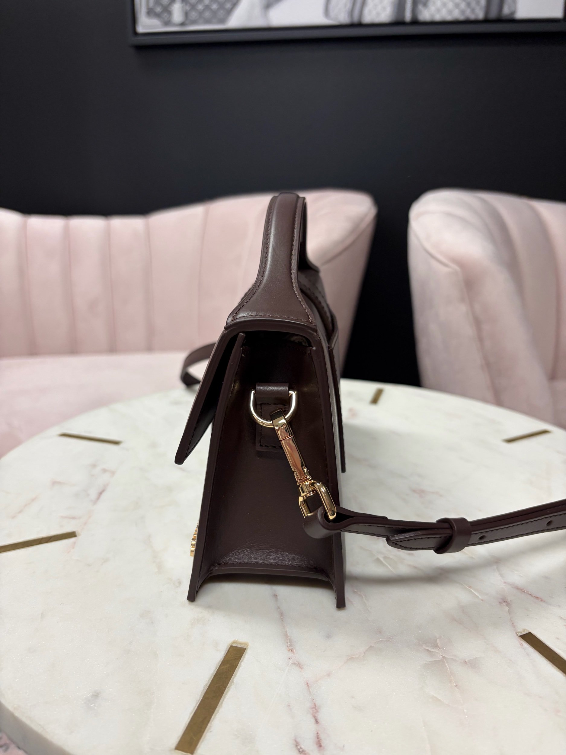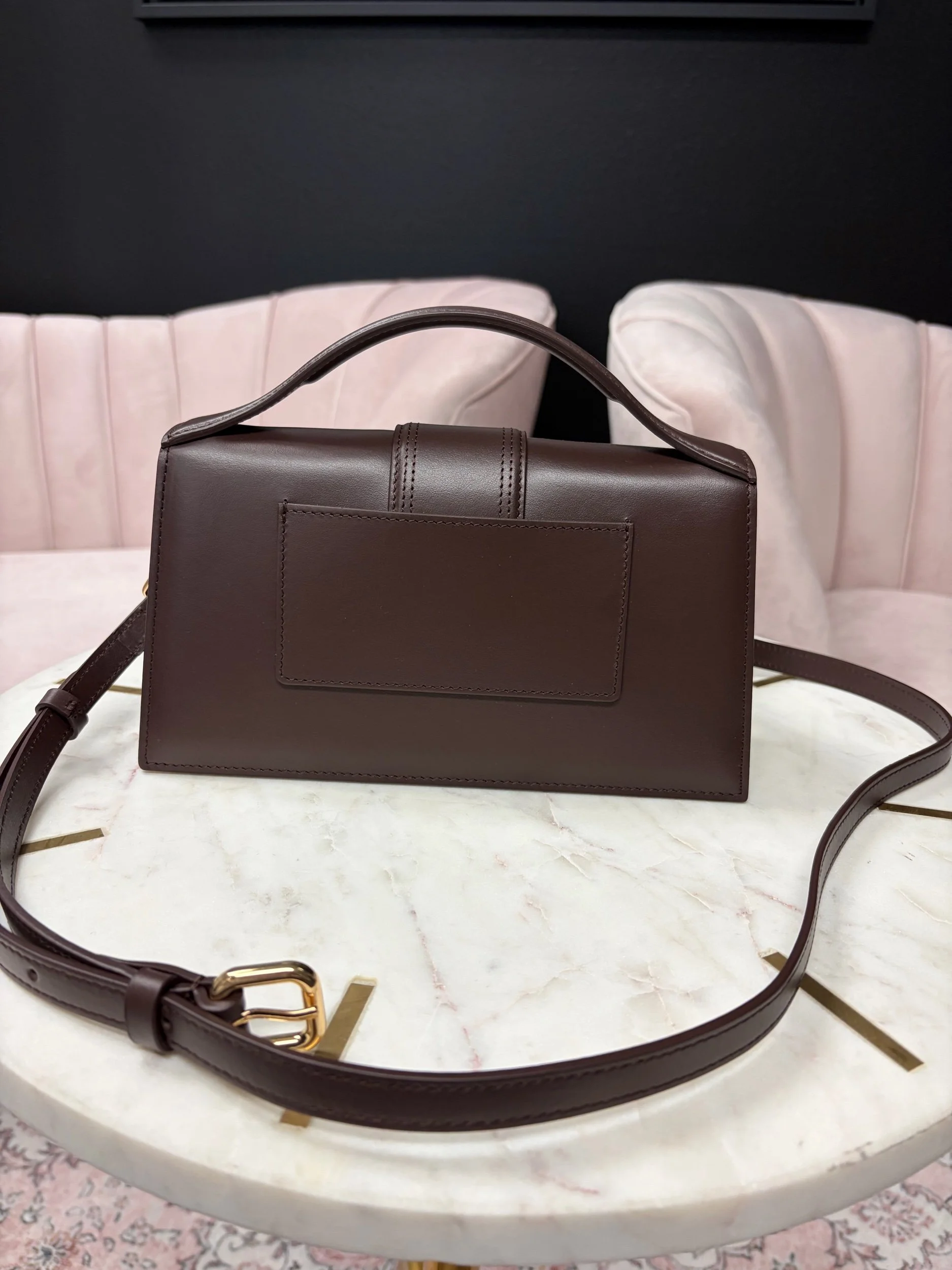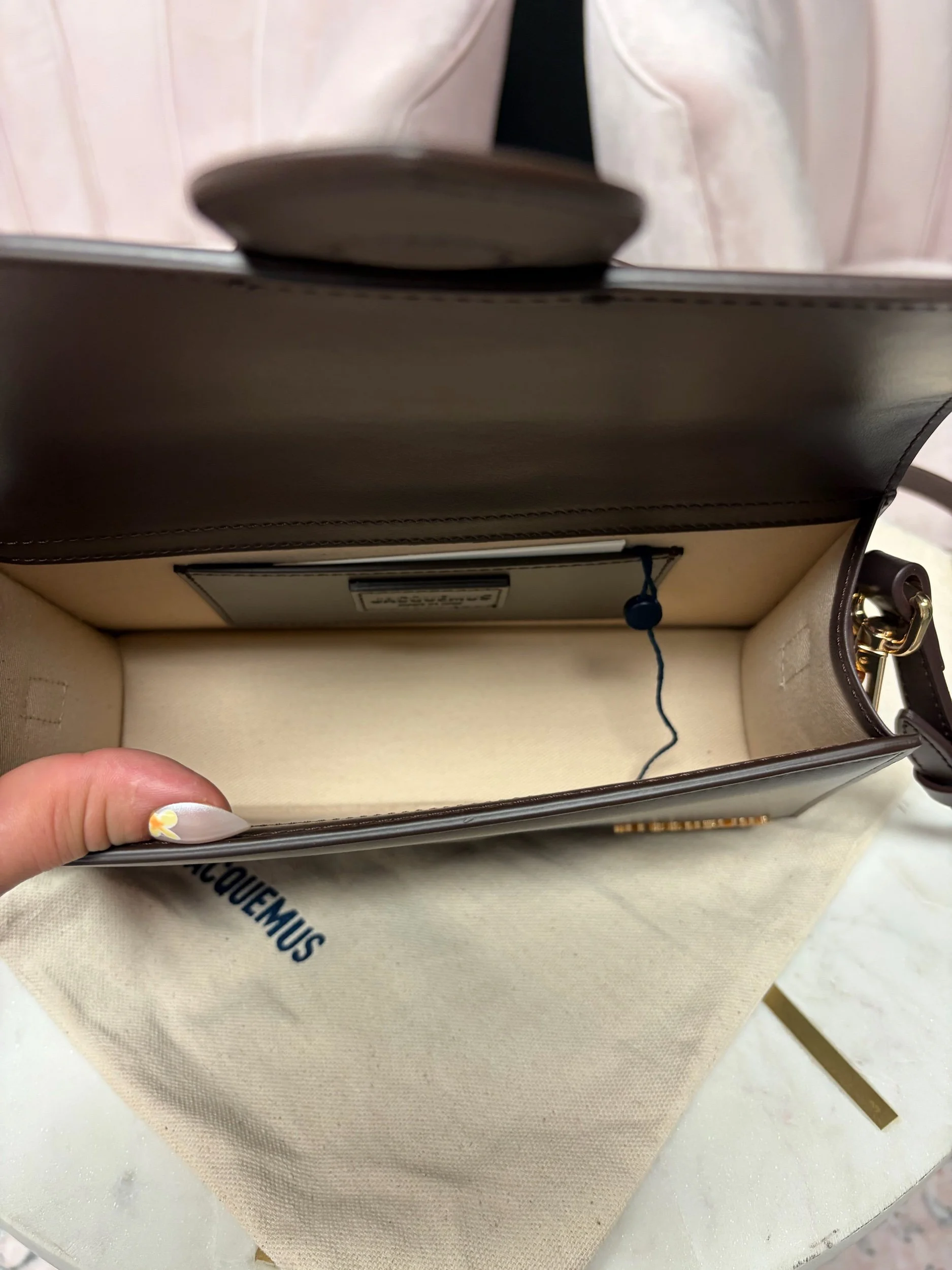 Image 1 of 6 Image 2 of 6 Image 3 of 6 Image 4 of 6 Image 5 of 6 Image 6 of 6 Jacquemus dark brown $780.00 Jacquemus Le Grand Bambino shoulder bag dark brown, brand new. Purchase Added! Jacquemus Le Grand Bambino shoulder bag dark brown, brand new.