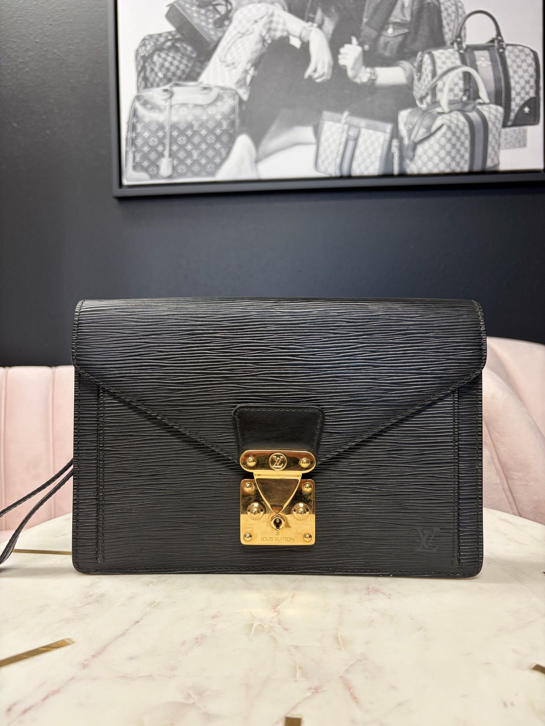 Image 1 of 5 Image 2 of 5 Image 3 of 5 Image 4 of 5 Image 5 of 5 Louis Vuitton Epi Pochette Sellier Dragonne clutch $580.00 Louis Vuitton Epi Pochette Sellier Dragonne clutch bag in black leather, good condition! Purchase Added! Louis Vuitton Epi Pochette Sellier Dragonne clutch bag in black leather, good condition!